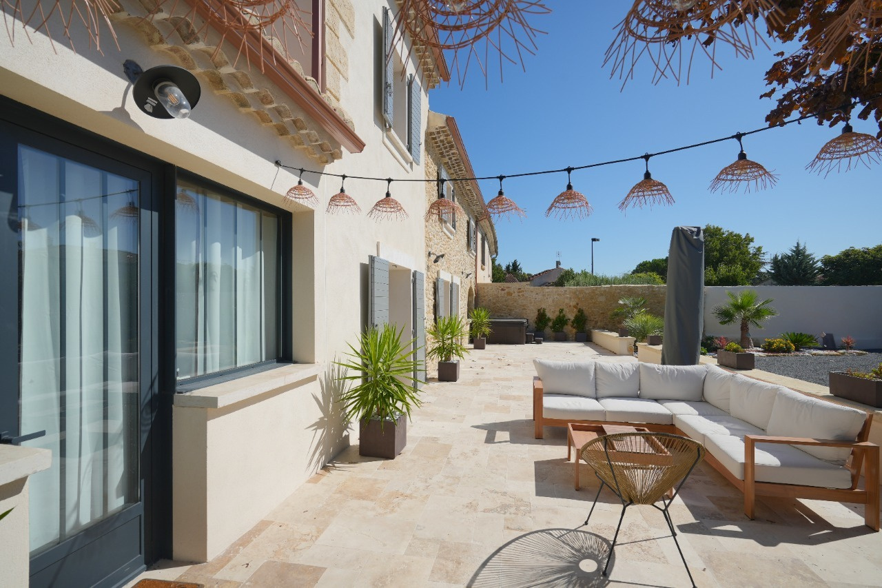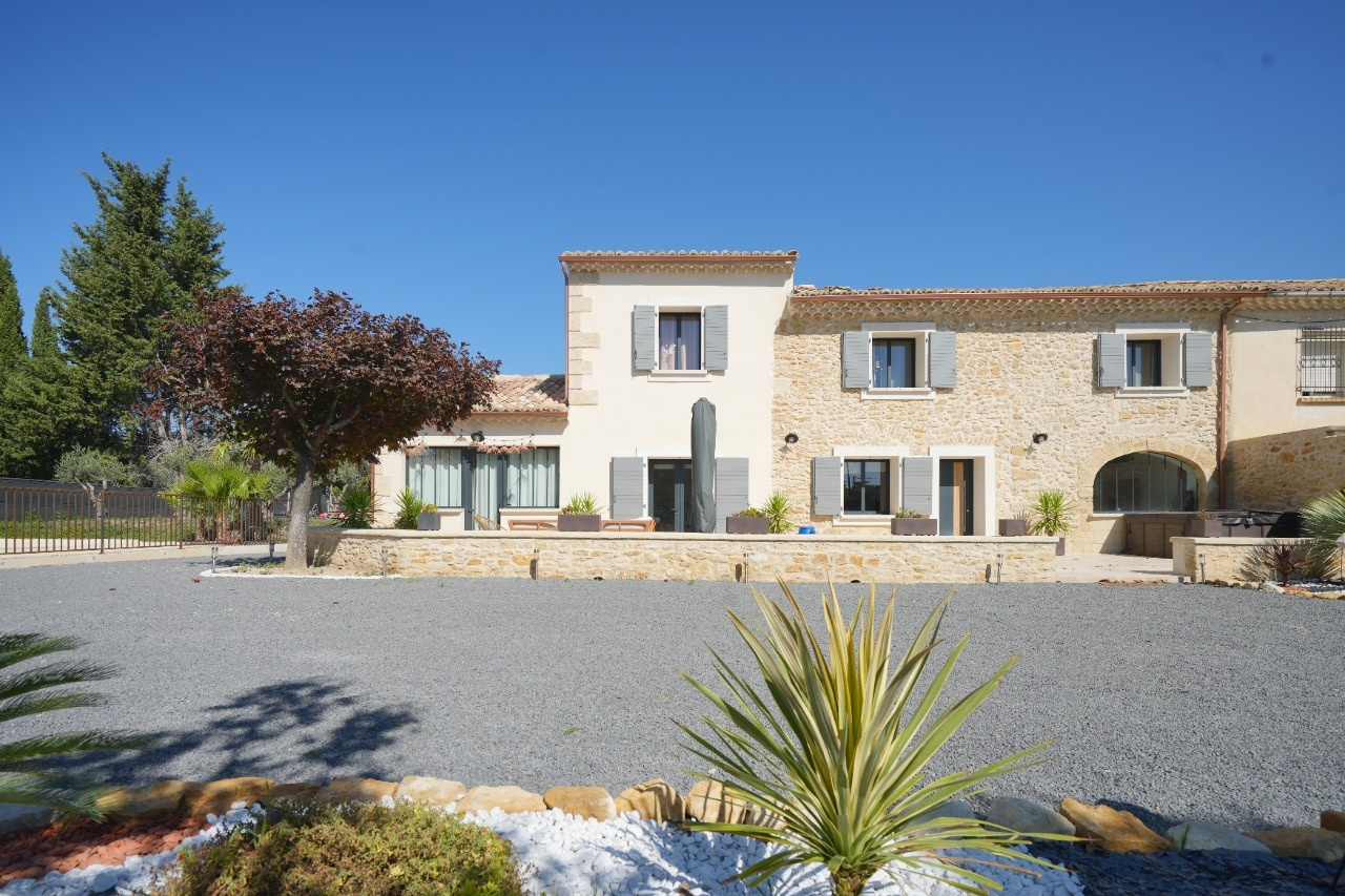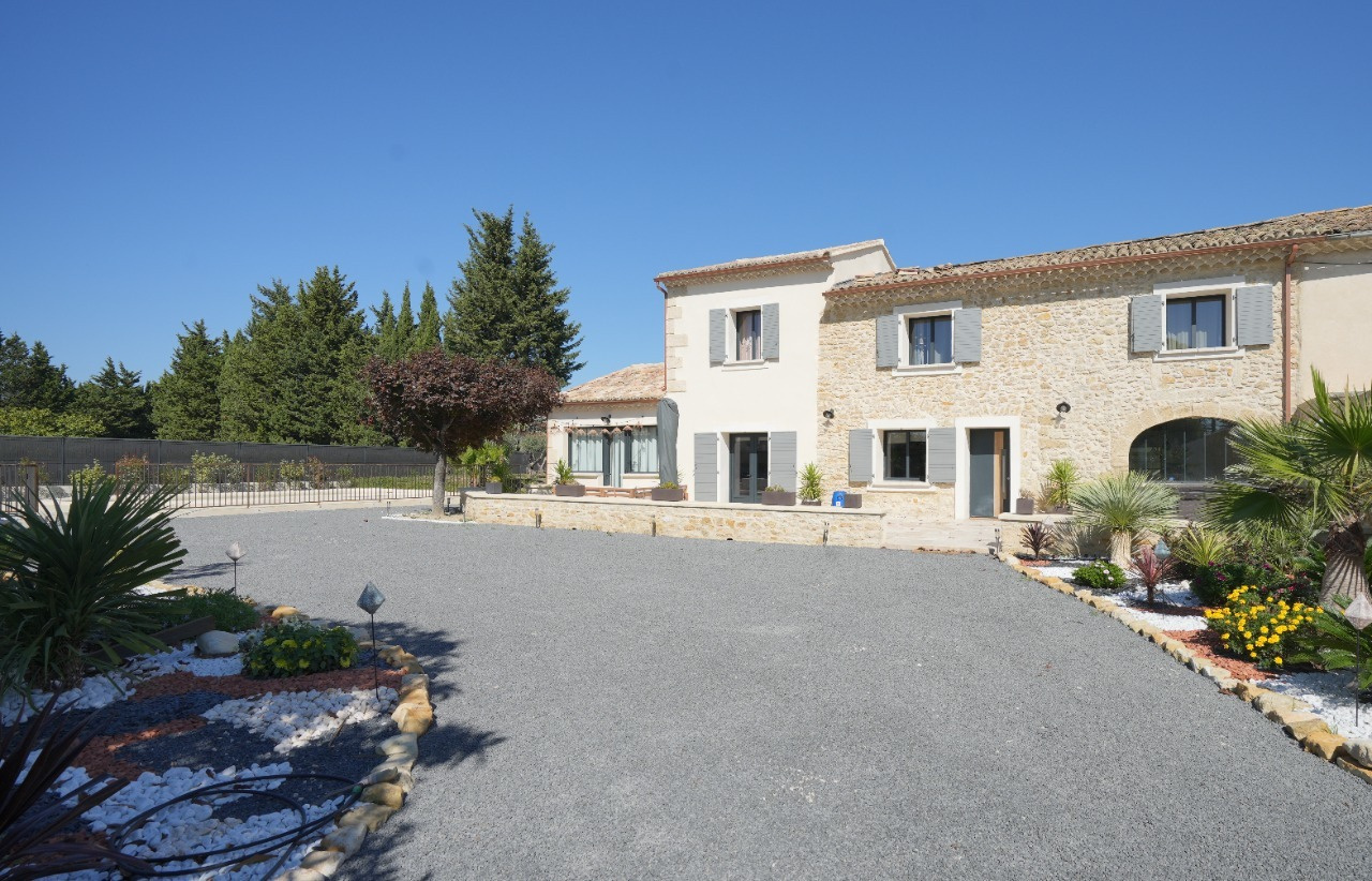 Très beau mas à louer de 188 m² superbement rénové alliant authenticité et esprit contemporain ! La lumineuse pièce de vie de 71 m² , au sol en béton ciré, offre une cuisine équipée de qualité avec plan de travail en granit, un vaste espace salle à manger et un coin salon. Le rez de chaussée dispose aussi d'une chambre de 20 m² (avec entrée indépendante pouvant aussi convenir pour un bureau ou un cabinet de profession libérale), d'une buanderie et d'un wc. Pour le côté pratique la maison communique avec le grand garage de 68 m² isolé. L'étage du mas offre 3 chambres , une salle de bain avec baignoire et douche et une suite parentale avec placard et salle d'eau privative. La terrasse de 100 m² en travertin est propice à la détente. Coté piscine : construction neuve composée d'un double abri voiture et d'un pool house comprenant une pièce technique isolée et carrelée et d'un coin cuisine d'été de 28 m². Piscine maçonnée et sécurisée de 9x5 m au sel, totalement automatisée. Belles prestations : chauffe eau thermodynamique et pompe à chaleur réversible en gainable sur l'intégralité du mas. Massifs paysagés avec arrosage automatique. Un très beau produit au calme et à proximité de toutes les commodités ! Pour tous renseignements veuillez contacter Alexandra Git au 06.82.25.91.90 . Loyer mensuel : 2 000 € + 30 € de provision pour les ordures ménagères. Libre au 01er février. Serieuses références exigées. Honoraires charge locataire : 1 800 € pour bail et état des lieux.