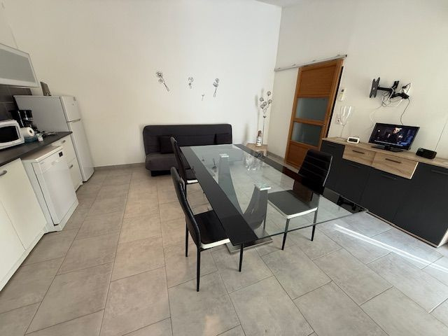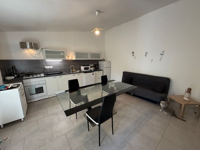 Agréable maison de plain pied de 38 m² meublée composée d'une pièce de vie de 22 m² avec son coin cuisine équipée et sa climatisation réversible. Le coin nuit dispose d'une chambre de 9.65 m² avec placard et cimatisation réversible et d'une salle d'eau de 7.21 m² avec wc. Terrasse couverte et fermée de 10 m². Petit terrain à l'avant et place de stationnement. Libre dés le 01er décembre.
